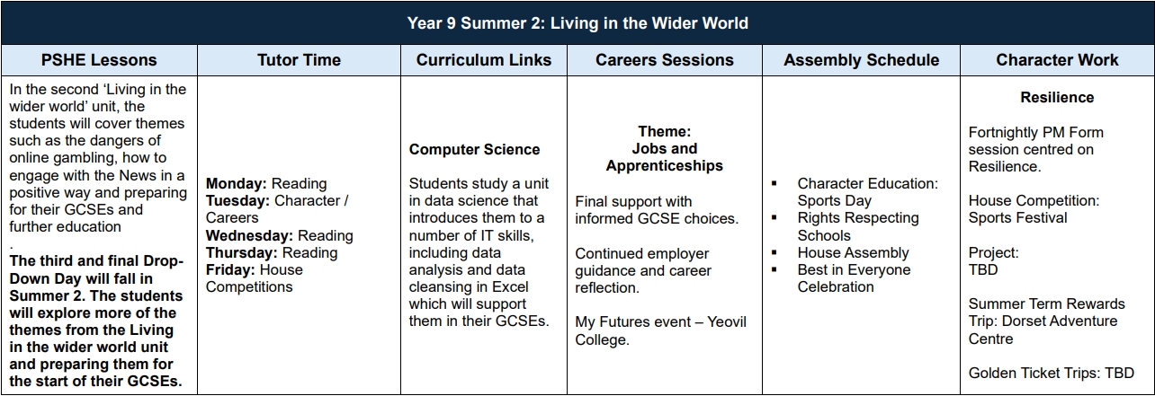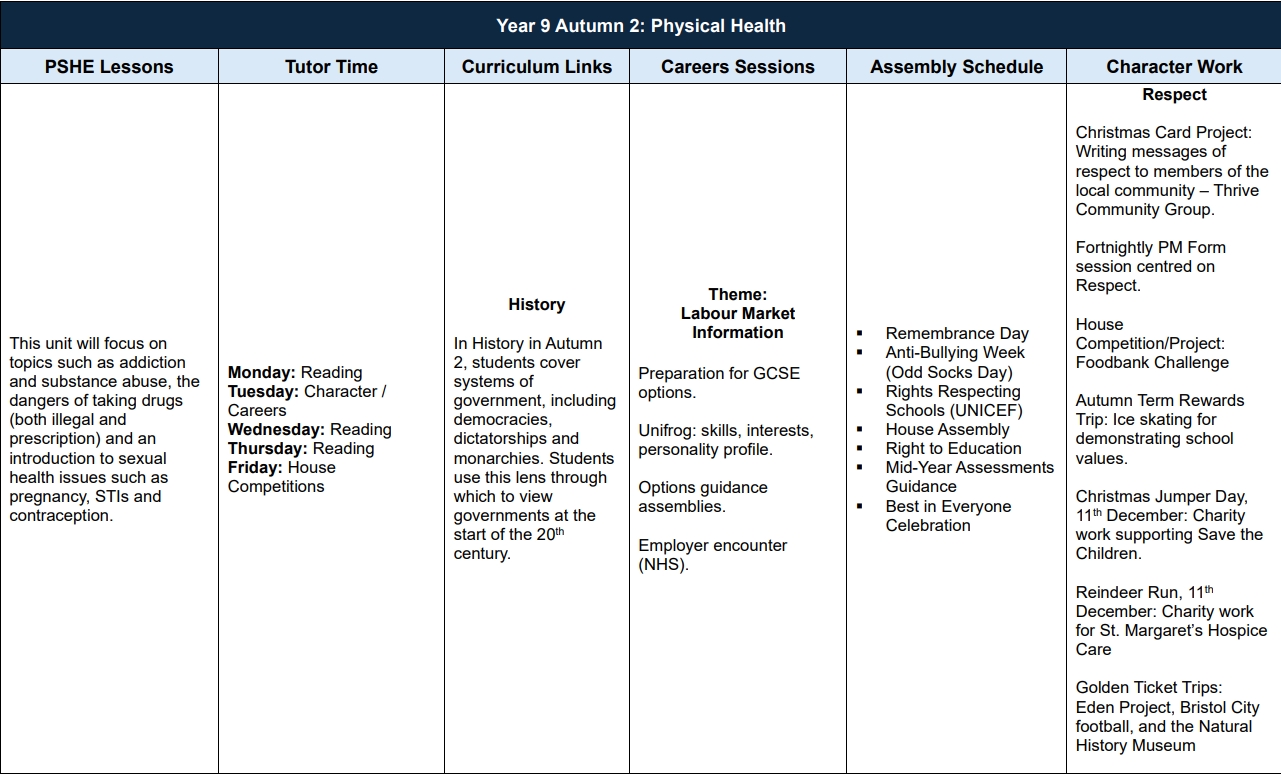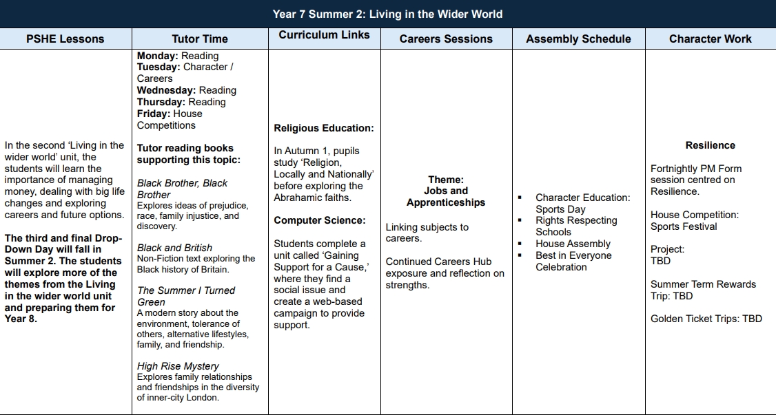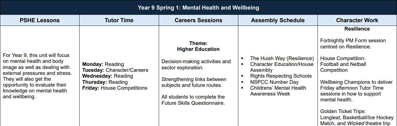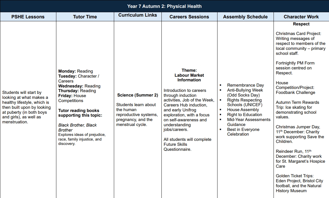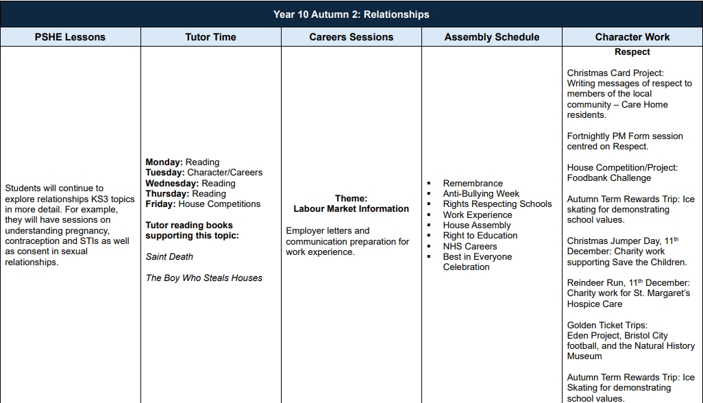 From Years 7–9, students have a timetabled PSHE lesson every fortnight, complemented by three ‘Drop-Down’ days each year when all students (Years 7–13) step off timetable to engage in PSHE learning with our teaching staff and external specialists. In addition, provision includes bespoke tutor sessions, whole-school assemblies, and a comprehensive Careers Information, Advice and Guidance (CIAG) programme, ensuring that personal development is woven throughout the school experience.