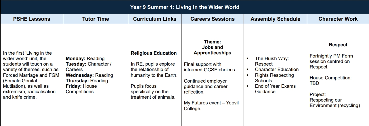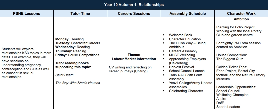 Personal, Social, Health and Economic education (PSHE) and Relationships and Sex Education (RSE) are integral to our whole-school curriculum, with themes embedded across all subjects. At Huish, students also benefit from dedicated PSHE sessions that provide space to explore a wide range of topics explicitly and in depth. Our aim is to equip students with the knowledge, skills, and confidence to thrive in modern society—helping them understand the world around them and their place within it. PSHE offers opportunities to discuss important societal issues that may not arise in everyday lessons, and we take pride in providing a diverse, inclusive curriculum where these conversations happen in a safe and supportive environment.